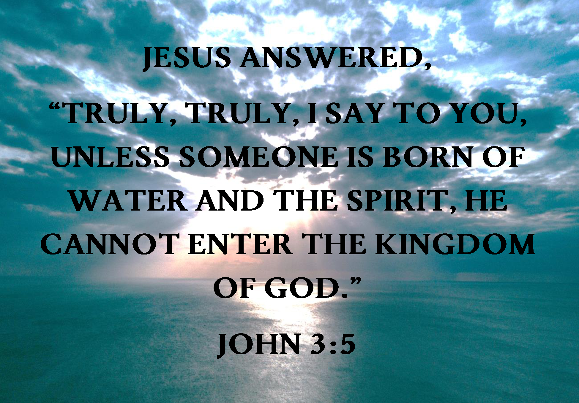 Jesus answered, “Truly, truly, I say to you, unless someone is born of water and the Spirit, he cannot enter the kingdom of God.” John 3:5*